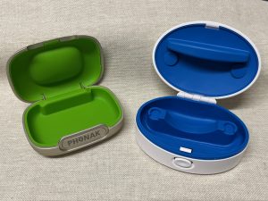 補聴器の購入時には収納用の携帯ケースや、乾燥用のケースなどが付属してきます。耳から外した後に適当な場所に置いてしまうと「外したところまでは覚えているんだけど、、、その後どこにいったか分からなくなった」なんていうことにもなりかねません。補聴器の置き場所や保管するケースなどを決めて管理していただくことが大切です。